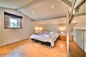 En mezzanine, lit king size avec des rangements à disposition et paravent pour garder votre intimité.