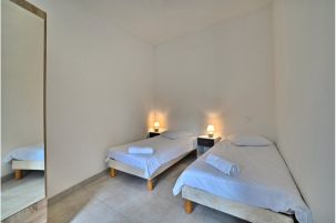 La première chambre est équipée d’un lit queen-size pour un confort optimal. La deuxième chambre propose deux lits séparés. Les deux chambres disposent de rangements pour vos affaires. Si vous avez besoin de plus de places pour dormir, un canapé-lit peut être déployé dans le séjour pour plus de flexibilité.